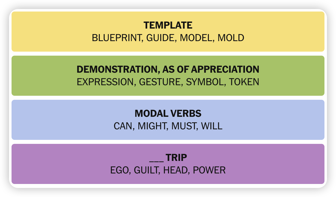- Group Answer: EGO, GUILT, HEAD, POWER
