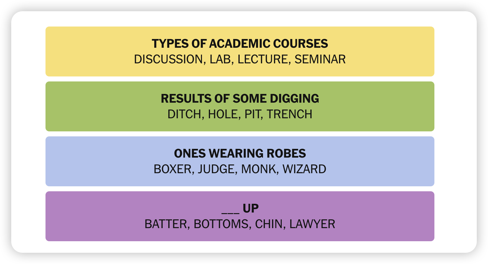 Here are some of the most challenging Connections puzzles we've seen. Maybe they'll help you spot patterns in future puzzles: